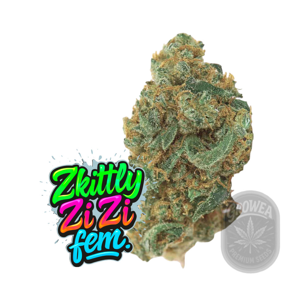 Unser Zkittly Zi Zi oder einfach nur Skittles, ist eine Indica-dominante Sorte, die mit ihrem Grapefruit-Geschmack explodiert. Skittles kombiniert die mentalen und physischen Effekte beider Elternstämme zu einem glatten, facettenreichen High. Die beschnittenen Knospen haben eine charakteristische Indica-Struktur, eng und dicht gepackt mit kleinen Blättern.